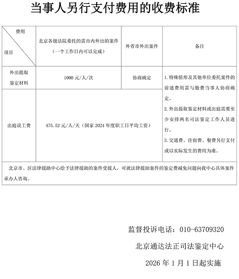 当事人另行支付费用的收费标准